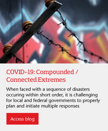 Perhaps the most challenging aspect for local and federal officials, even beyond the fiscal requirements, was the planning process around large-scale evacuations and post-event temporary housing procedures in the COVID-19 environment. Many countries enacted social distancing and strict screening guidelines that required new evacuation center set-ups that limited the number of evacuees per facility. The lack of facilities led to many people being sent by organizations to non-traditional displacement shelters for longer-term housing, most frequently a hotel. In other cases, regions facing tropical cyclones or inland flooding placed COVID-19 patients in “emergency hospitals” that were often identified in high-risk hazard areas. These unintended consequences put heightened strain on the need for quick and complex resilience planning. The other difficulty was locating enough volunteers to aid and/or be deployed in the hardest-hit areas to begin the relief and recovery process. Organizations such as the International Federation of Red Cross and Red Crescent noted some regional spikes in volunteer sign-ups, but many were asked to respond to disasters virtually and often to provide mental health support. The frequency of larger-scale events, notably in the United States, Central America, and Asia, stretched resources thin.