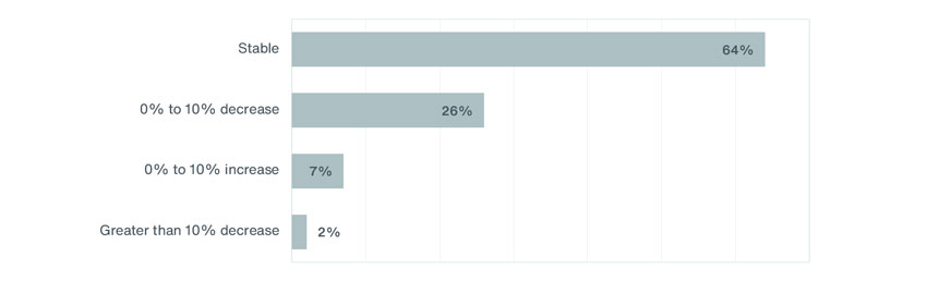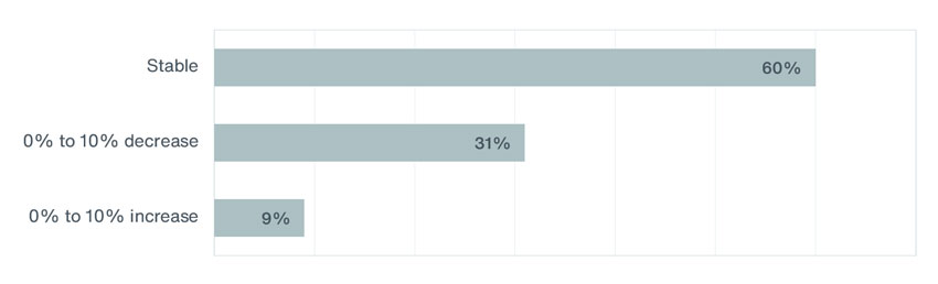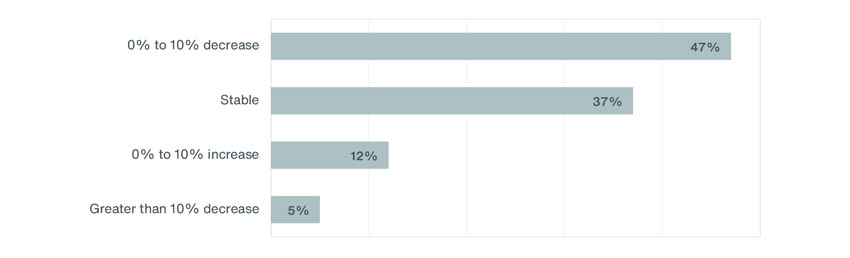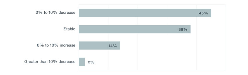 What do you expect overall private company (including nonprofits) D&O rates to do in 2024? Most underwriters expect rates to decrease moderately or remain stable.