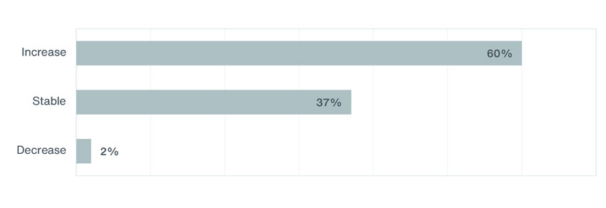 What do you expect overall private company (including nonprofits) crime rates to do in 2024? Most underwriters expect rates to remain stable or decrease moderately.