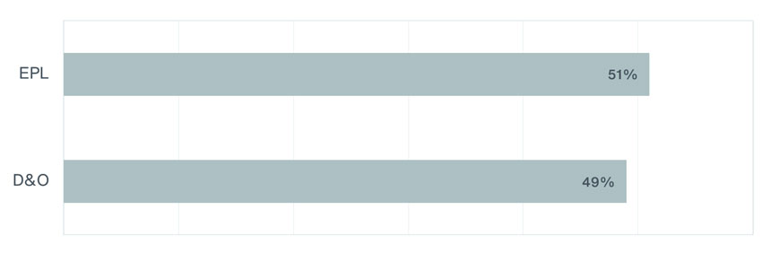 Which management liability line of insurance (D&O, EPL, Crime or Fiduciary) is facing the most exposure heading into 2024? Underwriters view D&O and EPL lines almost equally in terms of having the greatest exposure.