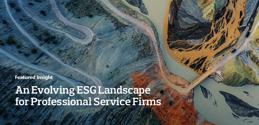 Professional service firms face additional risk as they are also being scrutinized due to the ESG-related practices of their clients. Given the opportunity to influence ESG strategies and reporting, the ESG role played by professional service firms will be important going forward.