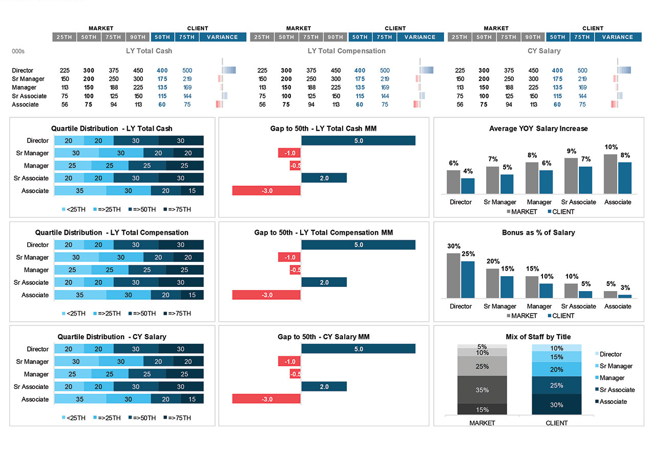 Benchmark pay, assess plan design practices, and access actionable talent analytics for thousands of unique job roles across more than 9,000 participating organizations.