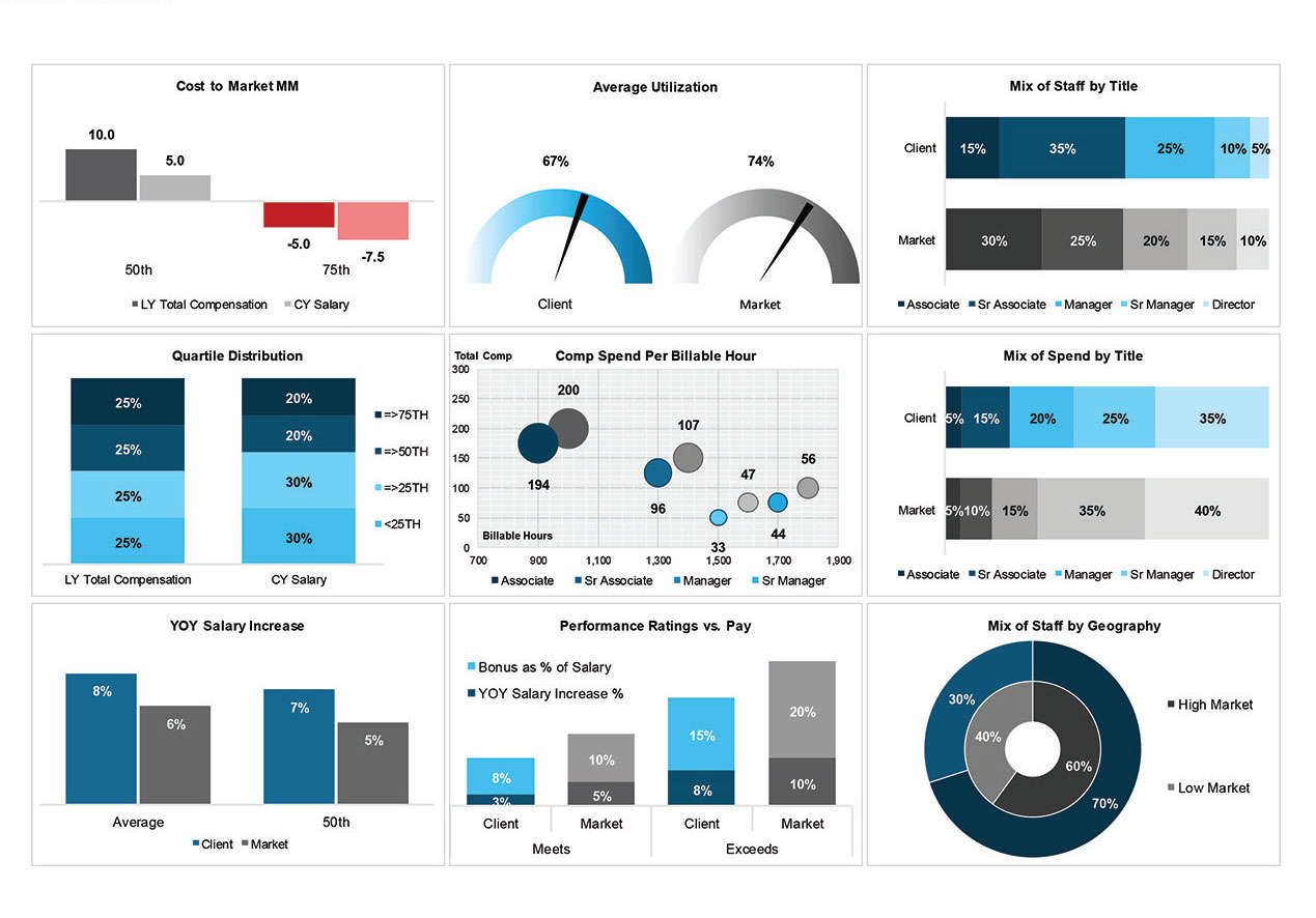 More than 9,000 organizations provide Aon with extensive workforce data, including detailed talent and rewards insights. We utilize this information to provide targeted analytics―segmented by industry, location, stage of development and more―so clients can make fact-based decisions.