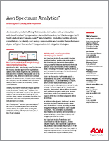 Aon Spectrum Analytics® reinforces Aon’s commitment to Data and Analytics, provides valuable insights, helps improve an organization’s risk profile and demonstrates the progress in TCoR reduction. Aon’s brokers will utilize these insights to negotiate improvements in risk transfer, financing and collateral, and support marketing efforts.
