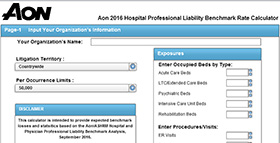 Health care risk managers and health care professionals interested in calculating their facility's loss cost may access the Hospital Professional Liability Benchmark Calculator. This online rater calculates 2016 prospective loss rates based on exposures.*