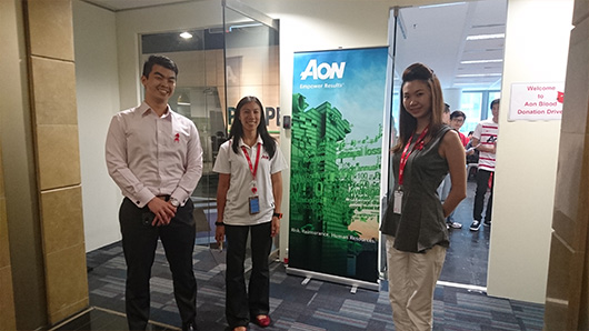 Aon would like to thank SGX Centre’s building management for their generous support and its fellow business associates in the insurance industry for their overwhelming participation. Aon would also like to express appreciation to Singapore Red Cross Society and HSA for making this event possible.