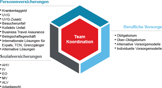 - Koordination der Personenversicherungen mit den Sozialversicherungen und der Beruflichen Vorsorge