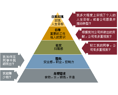 除了“柴米油盐酱醋茶”,我们需要研究关注“开门第八件事”来寻找激发员工热情的动机源。马斯洛理论是对个人需求和渴望最经典的研究模式。借助马斯洛需求层次理论,能够帮助分析我们是否已经采用了各类奖励认可手段来激励员工。