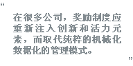 奖励计划经常由于过度机械化而失去其效力。在讨论奖励策略时,企业的薪酬福利经理常常谈到行业基准、薪酬比率和市场水平。此时的奖励计划管理已经演变成一种纯技术性的分析工具,显然已经与我们初衷背道而驰。企业的奖励策略应该与企业的经营目标、愿景和价值观如影随行,从而支持商业目标的最终达成。