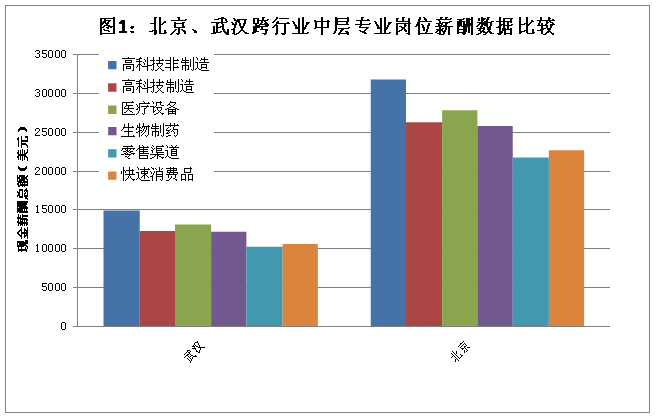 结合怡安咨询Radford高科技企业的全球薪资调研数据库,我们可以得知,就高科技非制造行业而言,以中层专业岗位为例,它在各地的行业比较中均处在高位,但就大陆境内的候选地而言,武汉应该是个不错的选择,因为那里单个人员成本要比北京节省50%(见图1)。