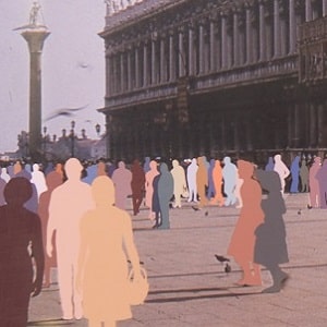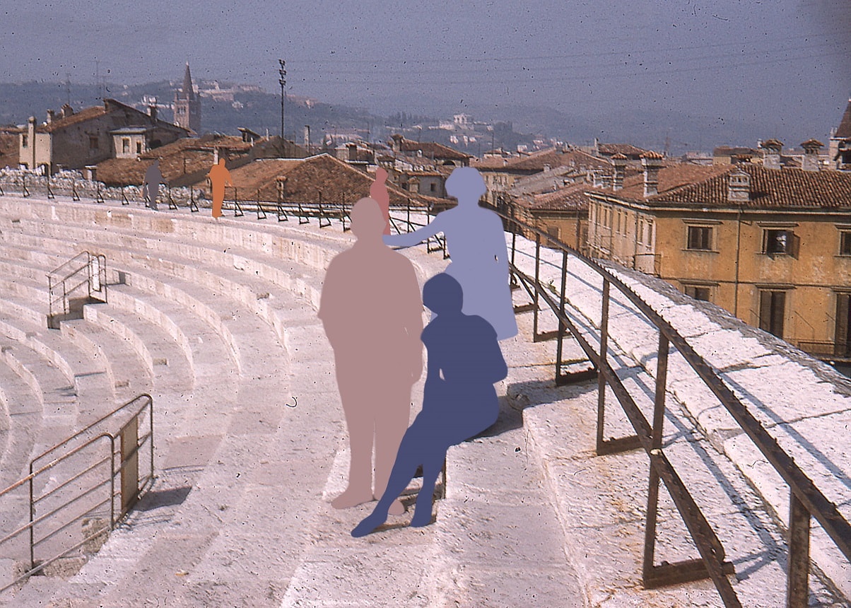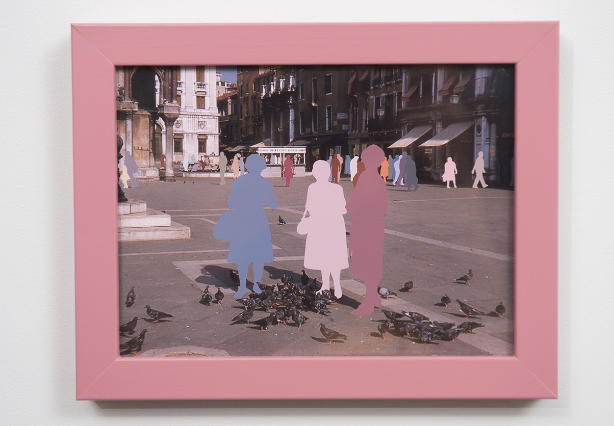 'Wish You Were Here' is a series of found images which have been taken on different people’s holidays throughout the last 60 years. Blakeman uses bright colours to represent each person in the photograph, disguising their identity to further questioning of who might be pictured. Each silhouette represents people who once stood in a happy memory, memories which are now lost, given up or misplaced by the original owner and now in the possession of a stranger.