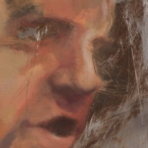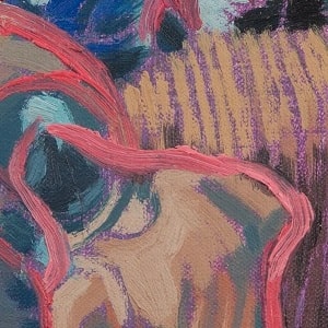 Paintings engage me when I have to unpick the surface - when something is happening just out of reach. These paintings are simultaneously a present experience and a record of the artist's hand. We are invited to read the narrative of its surface, and the relationships between elements.