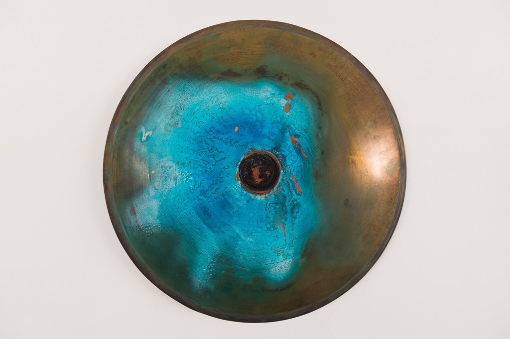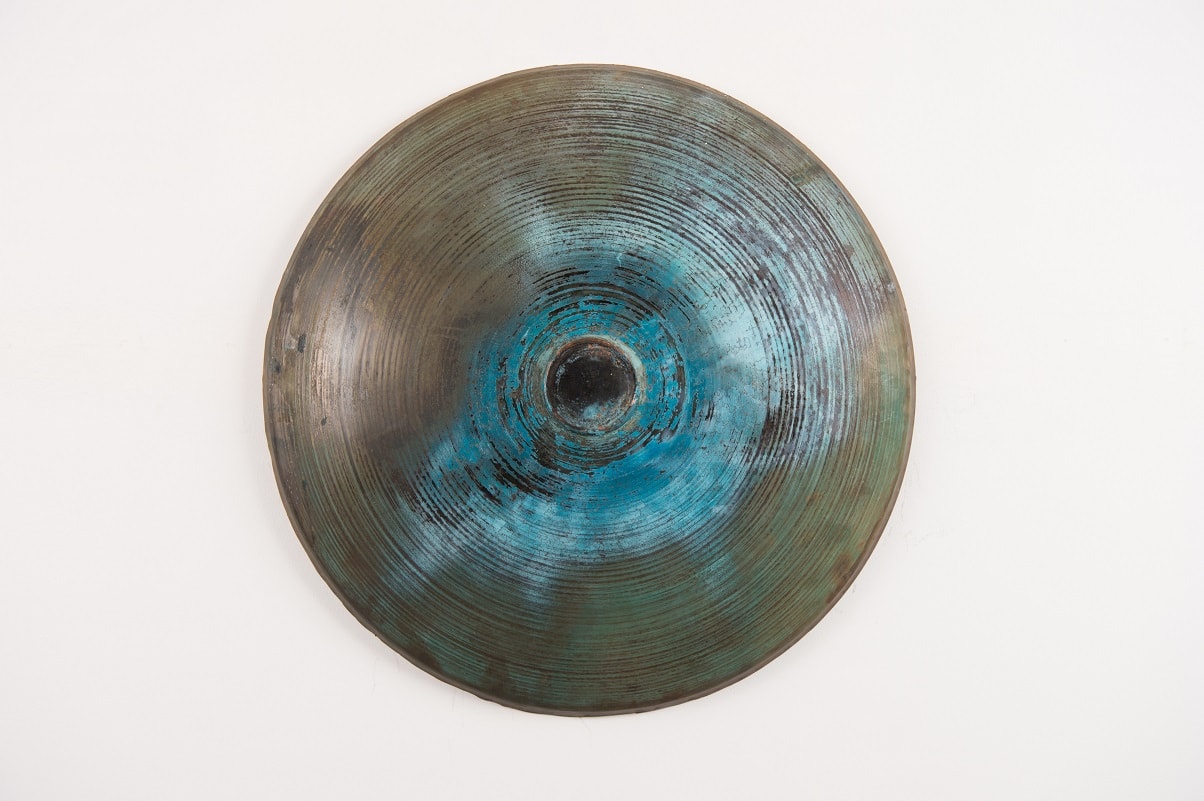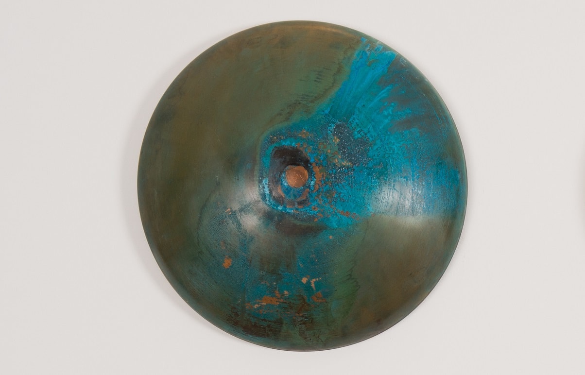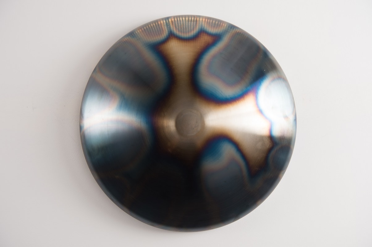 Georgiana Rebekah’s practice is based around the process and the transformation of materials. The engagement with a constant, physical process of turning metal on the lathe to form a once-flat material into a three-dimensional object. Every imperfection and mark to the surface is glorified by performing a series of oxidisation methods, altering the material until it eventually looks nothing like its original form and no longer obtains its original function.