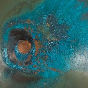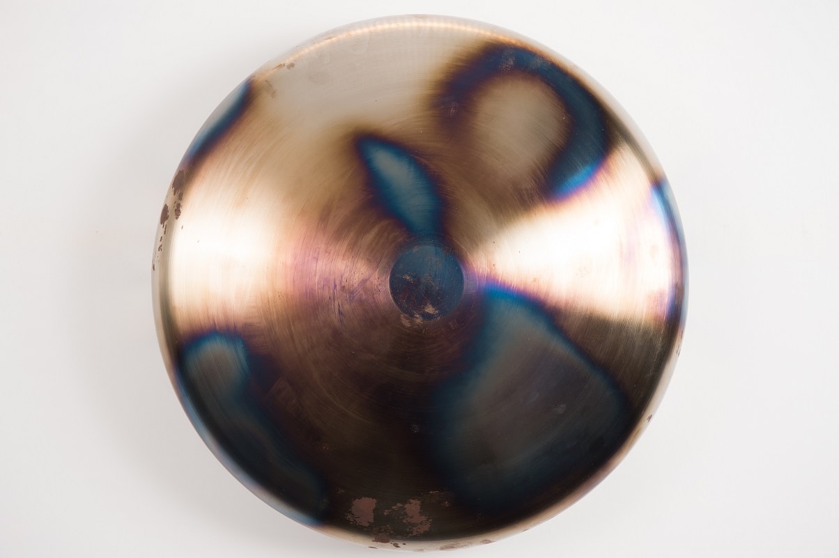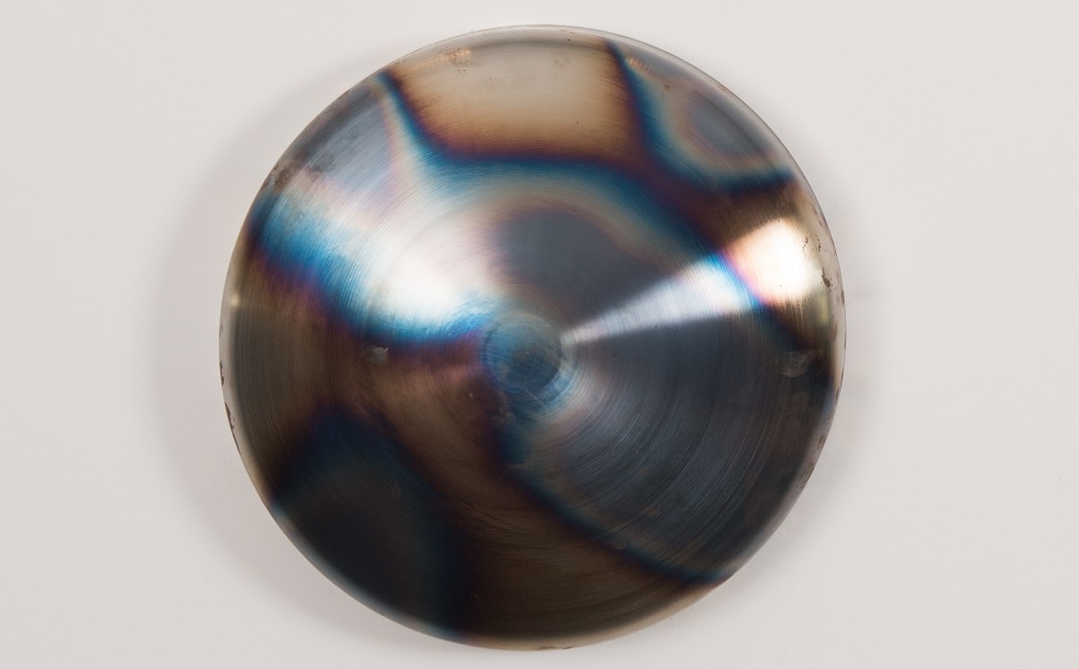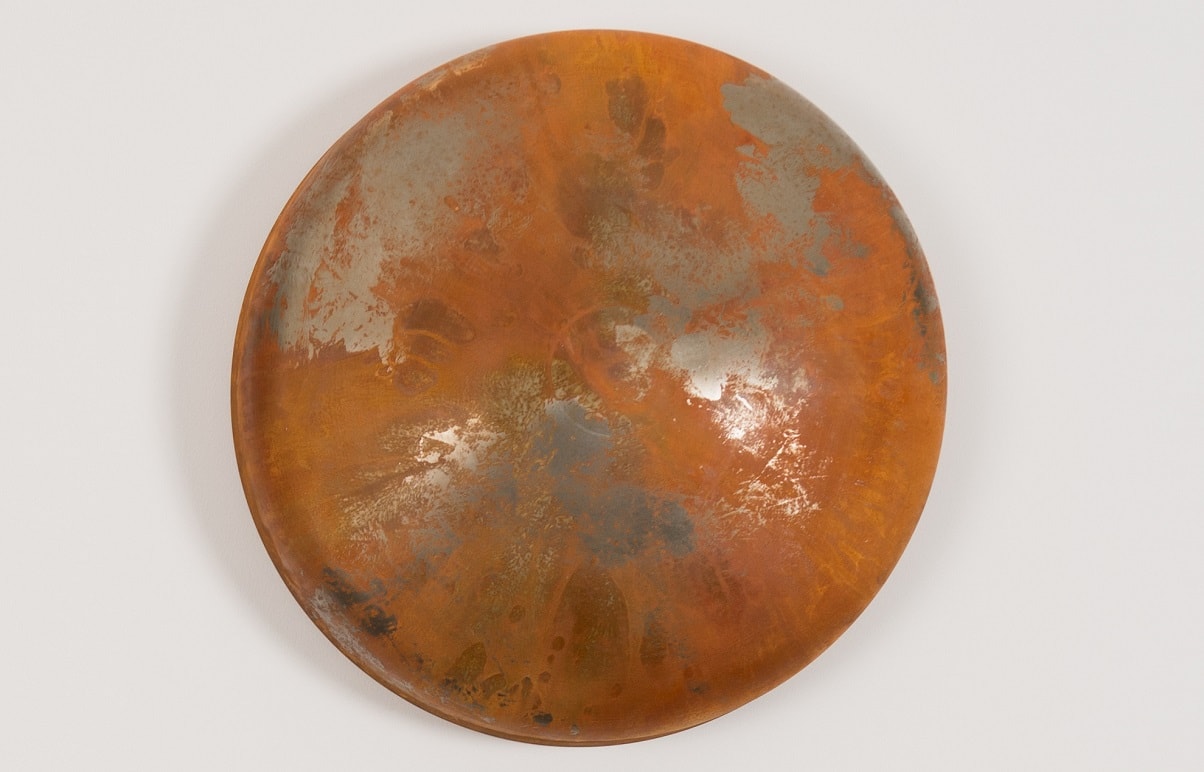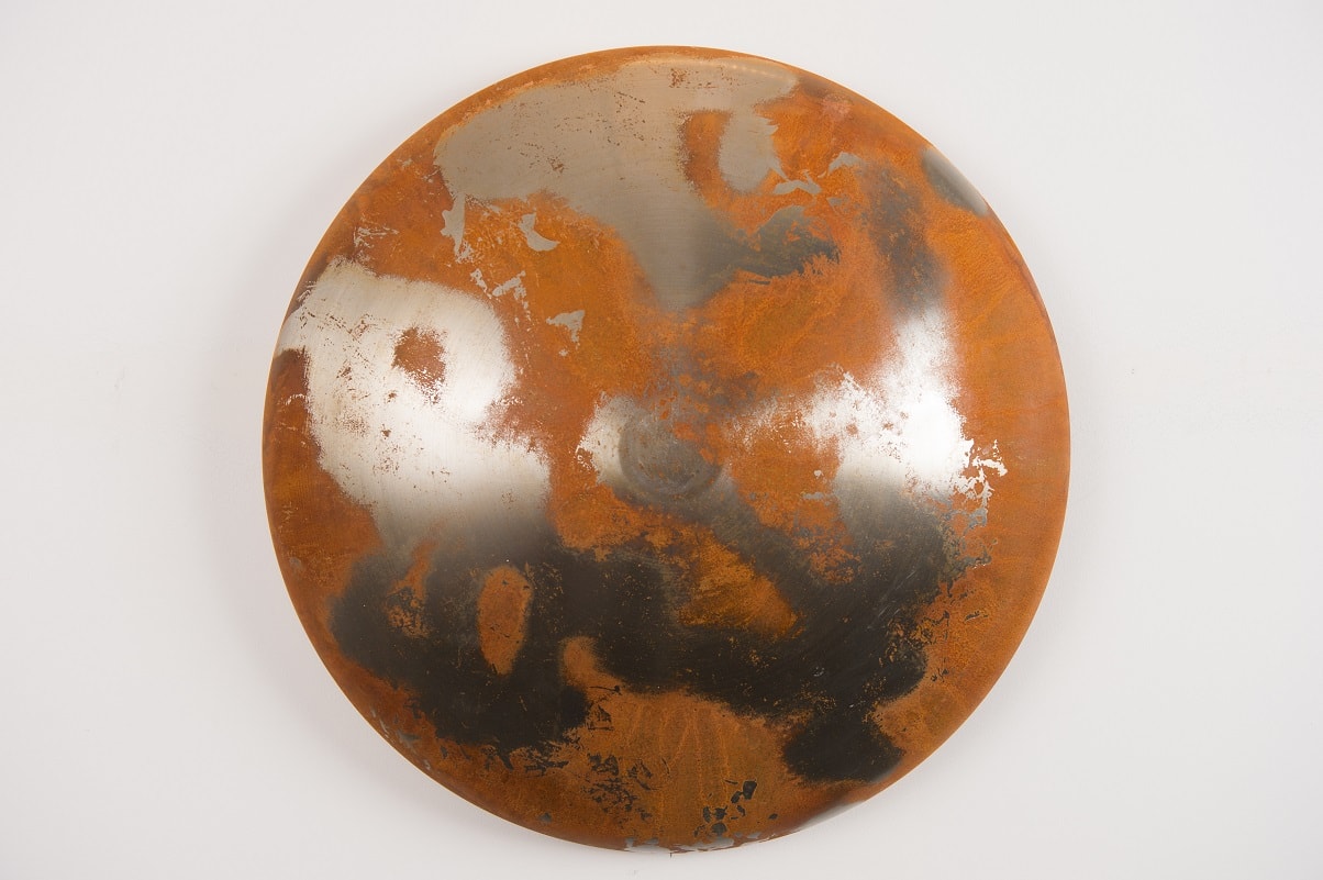 Georgiana Rebekah’s practice is based around the process and the transformation of materials. The engagement with a constant, physical process of turning metal on the lathe to form a once-flat material into a three-dimensional object. Every imperfection and mark to the surface is glorified by performing a series of oxidisation methods, altering the material until it eventually looks nothing like its original form and no longer obtains its original function.