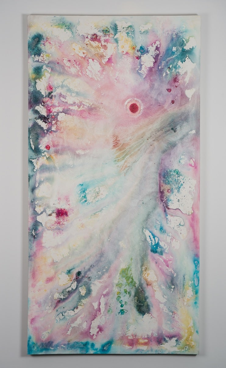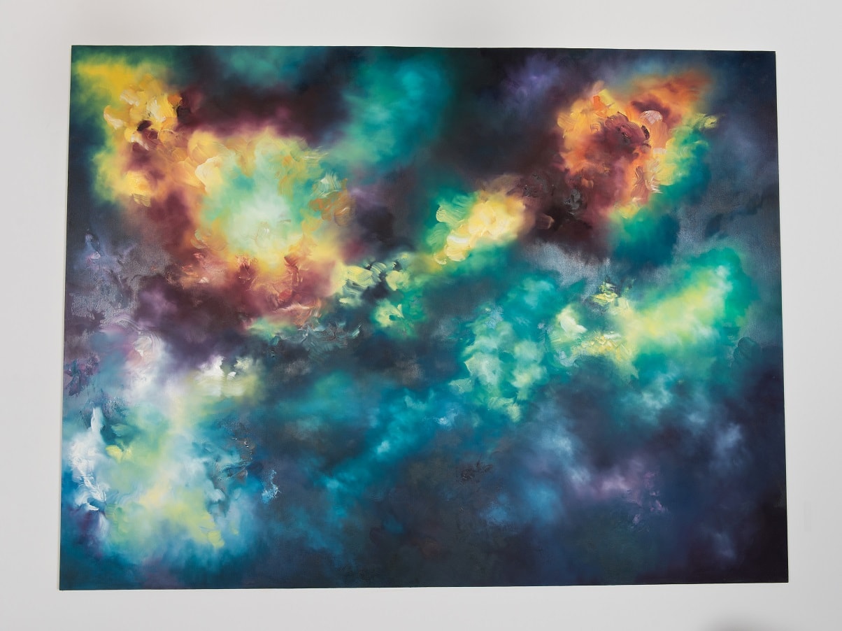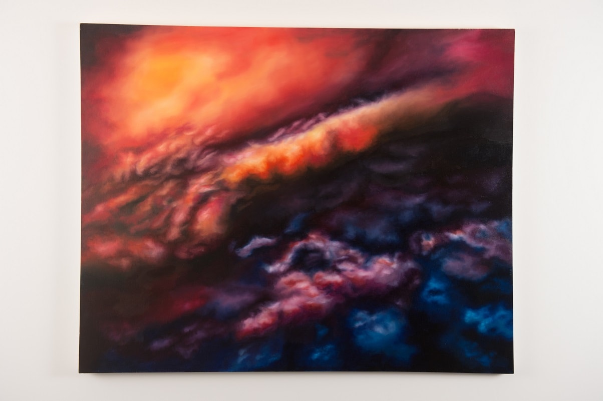 Amy Brookes recently graduated from Manchester School of Art after studying a BA Hons in Fine Art. She explores contemporary ideas of the sublime within nature, which captures a romantic sensation of infinite space and our insignificance within the universe. She creates colourful, ephemeral paintings that bring the external world into the gallery space, giving the illusion of depth to create windows into other realms. These ideas are produced by thoughts of society’s unsatisfactory, mediated experiences of nature due to our dependence on technology. Within her art practice, she is attracted to the use of colour, light and energy to create gaseous compositions.