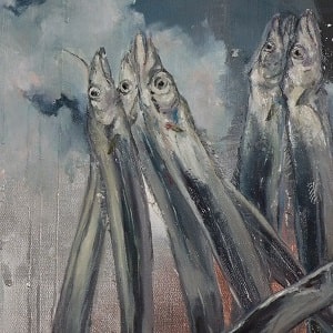 Working with oil, Charlie creates painterly fictional worlds that border on the sublime. Interactions with colour and surface produce interesting landscapes that brings attention to the decline of the great fauna of this world, combinations of toys and the real world bring inspiration and ambiguity to the piece.
