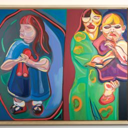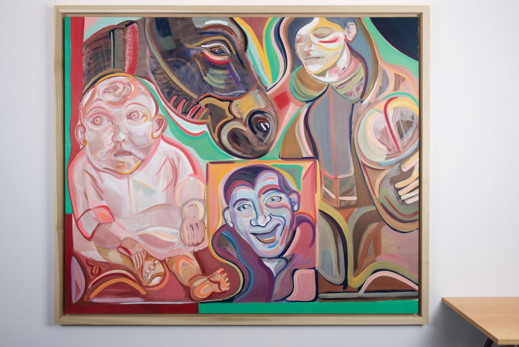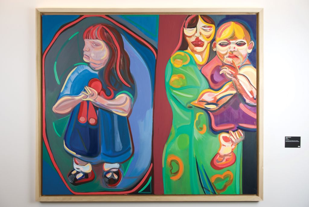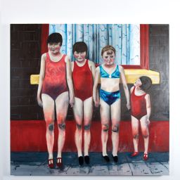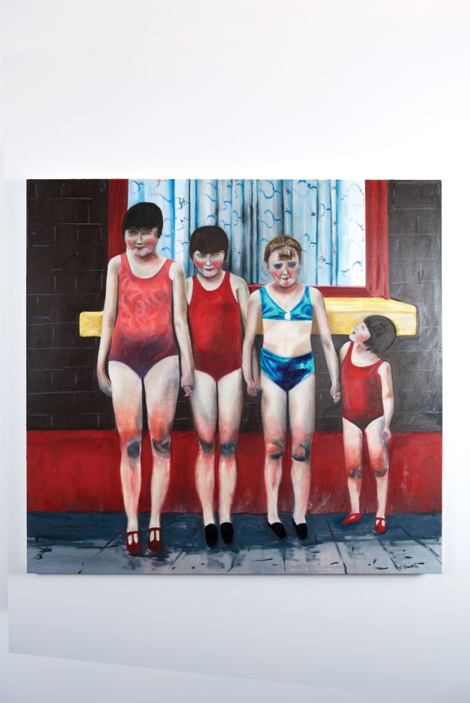Rose McMurray's paintings seek to address gender roles which are embedded within society; the premise that a male must be muscular and courageous to be admired and the female must appear modest and beautiful to be worthy of respect. The female is seen passively awaiting adoration while the male is strong and exuding power. McMurray counters this by creating a juxtaposition; the female embraces this dominant nature whilst the male becomes vulnerable and submissive.