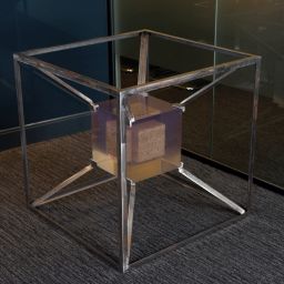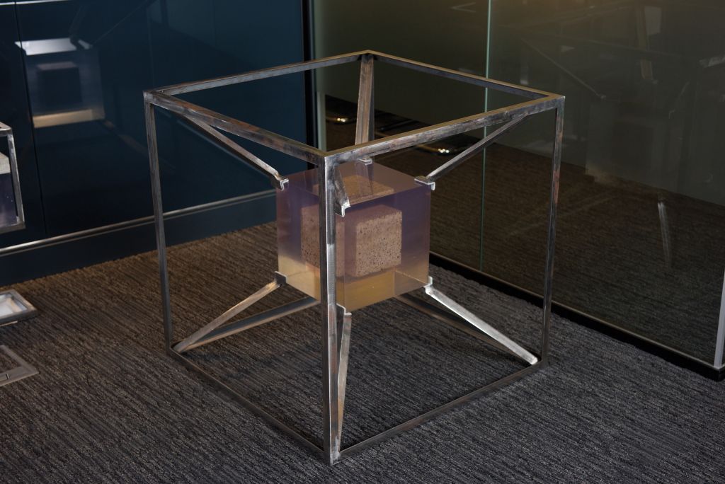Eve Hindle is a sculptor who experiments with casting, welding and polishing. Hindle has developed an ongoing dialogue between resin's transparency, concrete's weight and steel's geometrical frameworks. Her resin and concrete casts' perceptual aesthetics create perspective illusions of weightlessness through transparency. The repetitive forms and coherent combinations of materialities generate an evocative simplicity and a strong sense of presence through scale, weight and balance in composition as a whole.