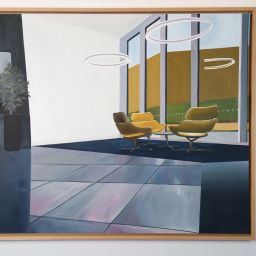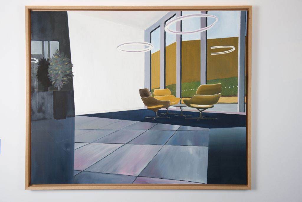 "Marc Auge's analysis of modern life currently interests me, especially around the notion of non-places, described by Auge as places in which we spend much of our time participating in travel, communication and consumption. In these paintings, public spaces such as shopping malls, office blocks and hotel receptions become the focal point, providing those spaces that are frequently unnoticed with their moment in the spotlight."