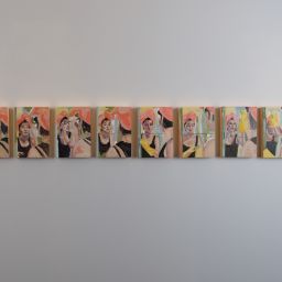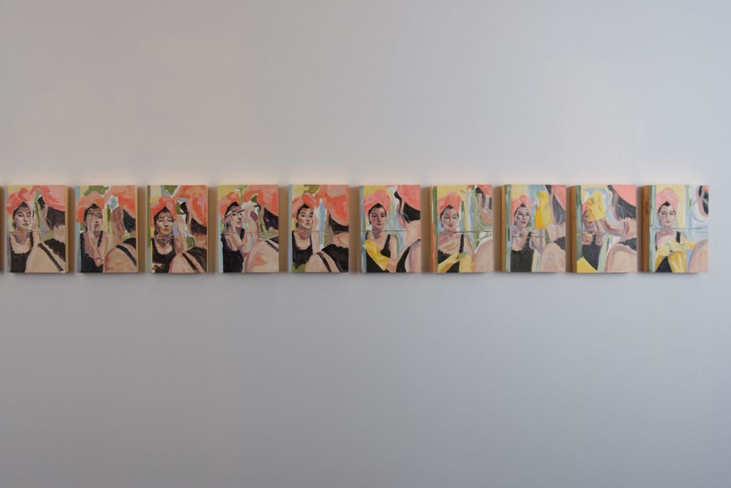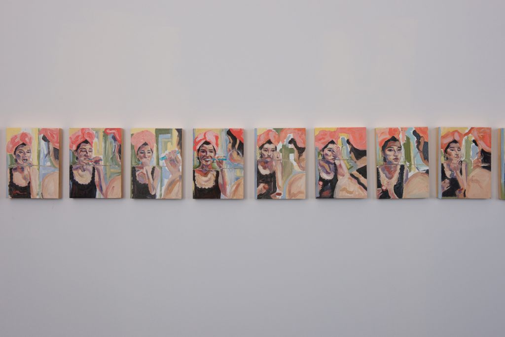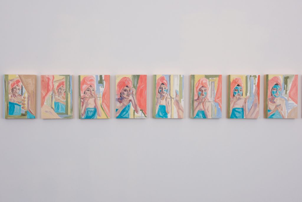 "In these paintings are depicted routines and procedures that people here, in particular women may find themselves performing in everyday life. Coyne is interested in the notion of beautifying and its importance for women in modern day society.