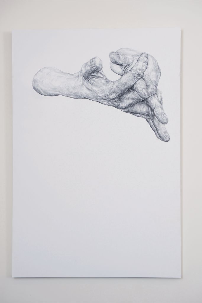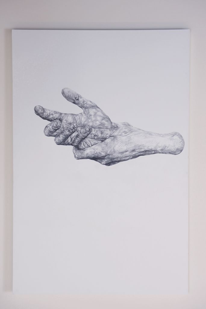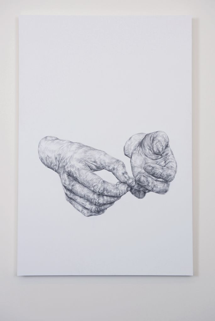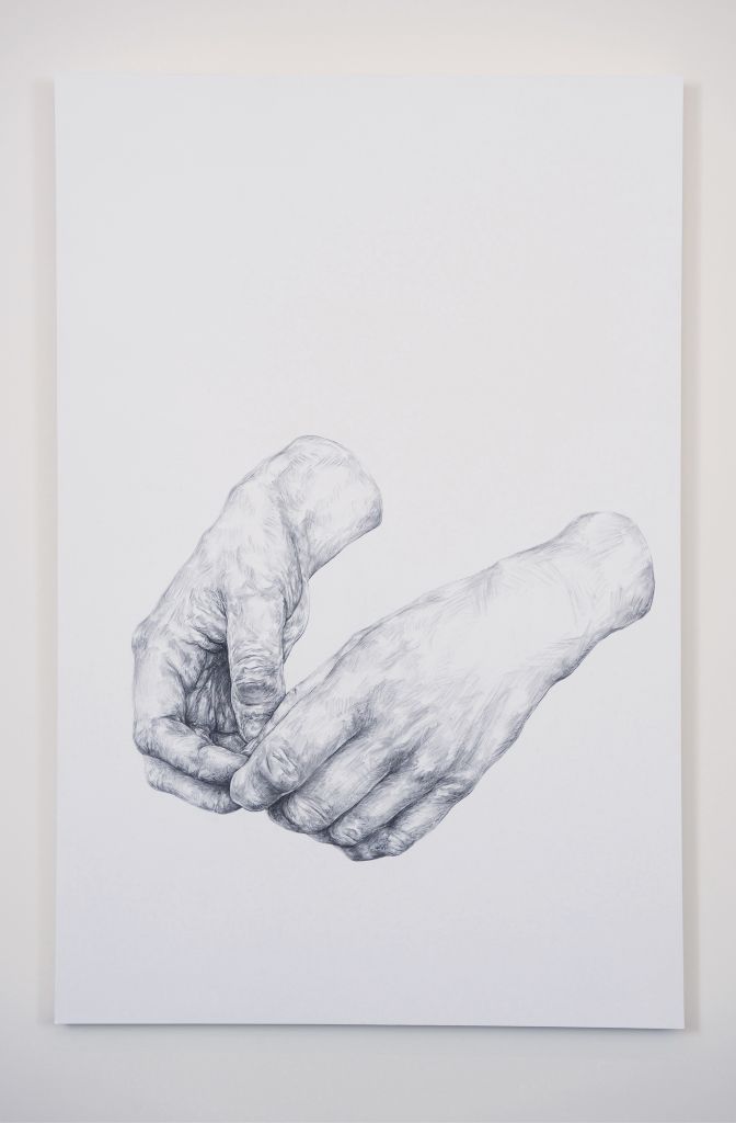 The gestures drawn are examples of unconscious cues, the subtle and unintentional hand movements that reveal a person's underlying psychological state, or the things left unsaid: 'the spoken on the edge of the unspoken'. Although these movements are silent, their revealing nature can make a person their loudest. To encapsulate this, the gestures are presented isolated on the page, forcing the viewer to acknowledge a movement that would otherwise be unnoticed.