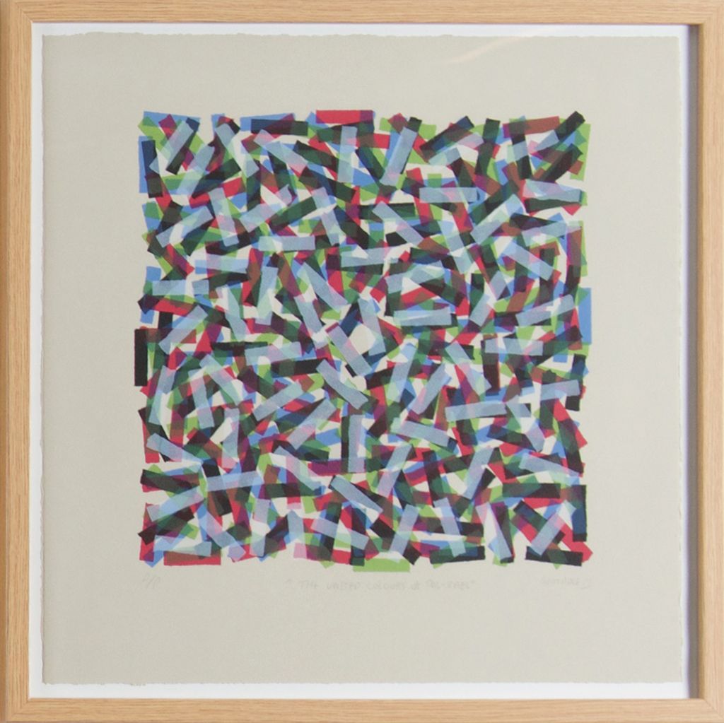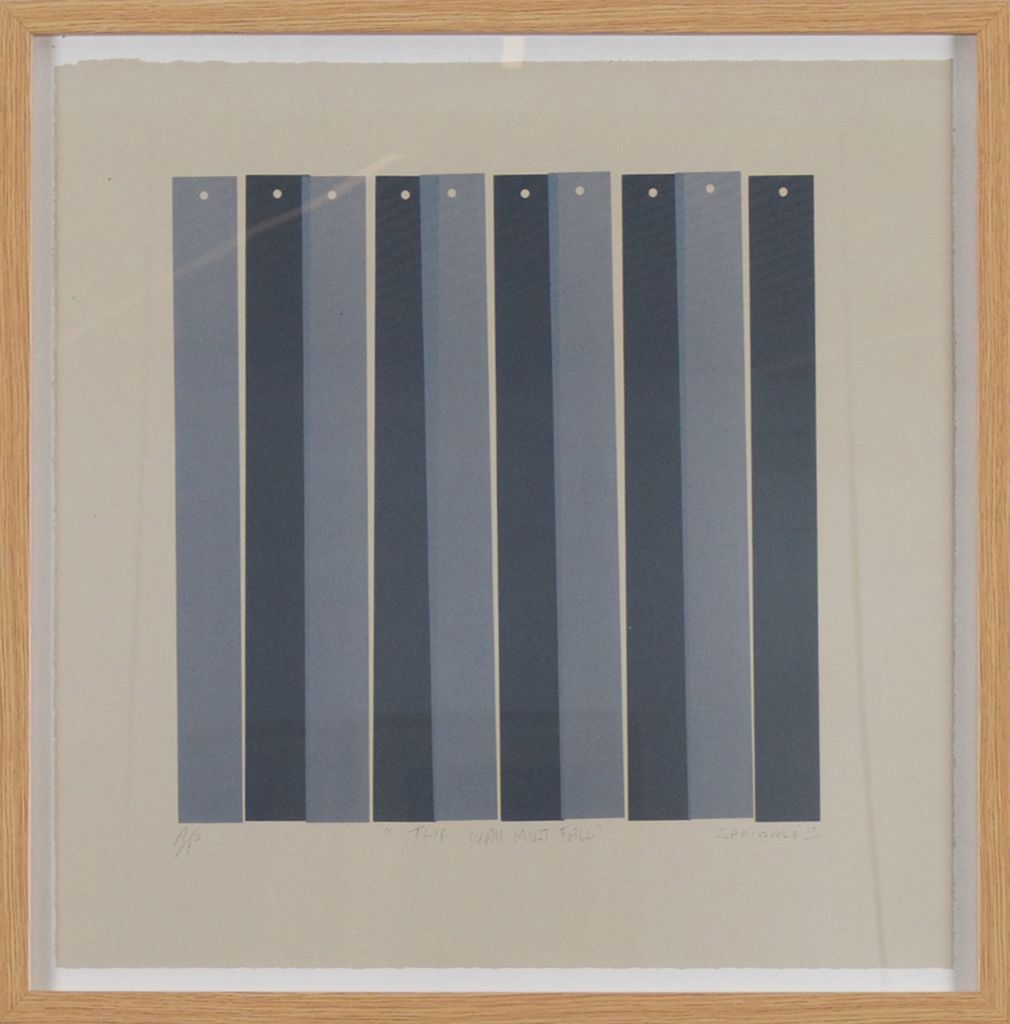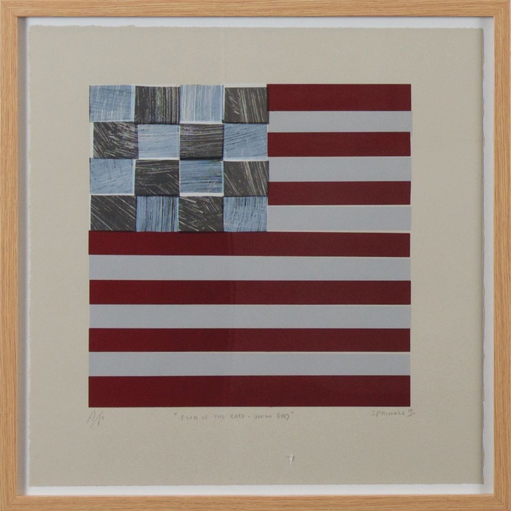 "My work explores subject matter steeped in conflict. The forms in this series of prints are derived from opposing symbolism, flags and walls of segregation. Through reworking, deconstructing and playing with source material, I attempt to make images that reflect current and past issues, create abstract signs of resolution and build idealistic symbols of union where there is discord. My drawings are created in tribute to victims of segregation throughout history.