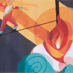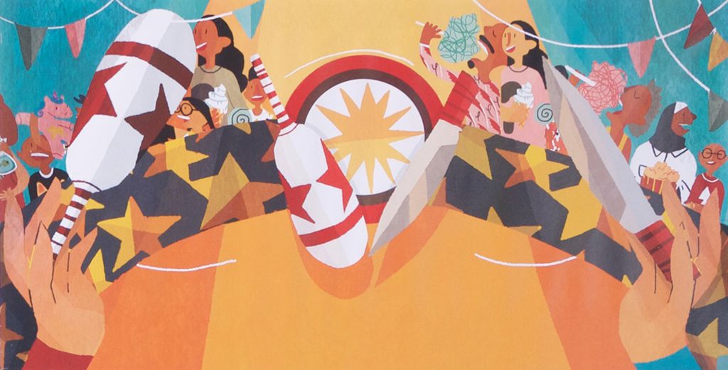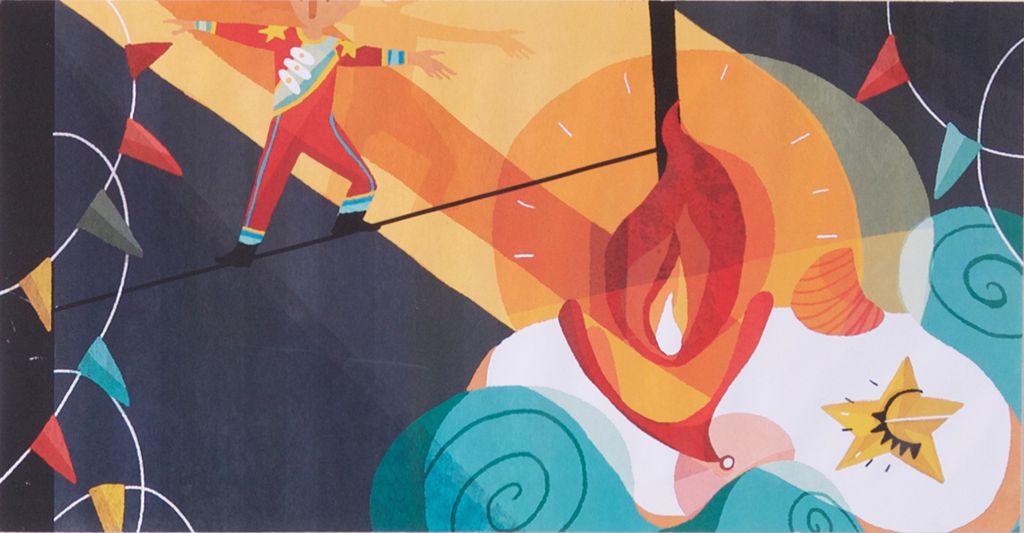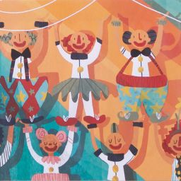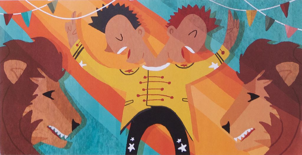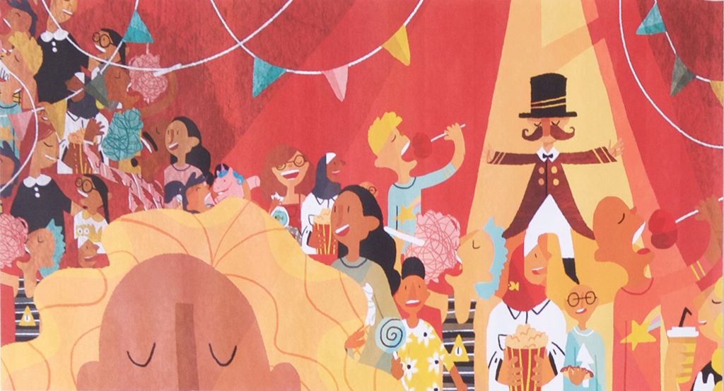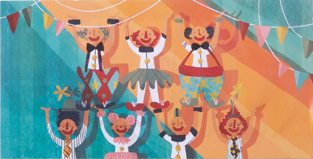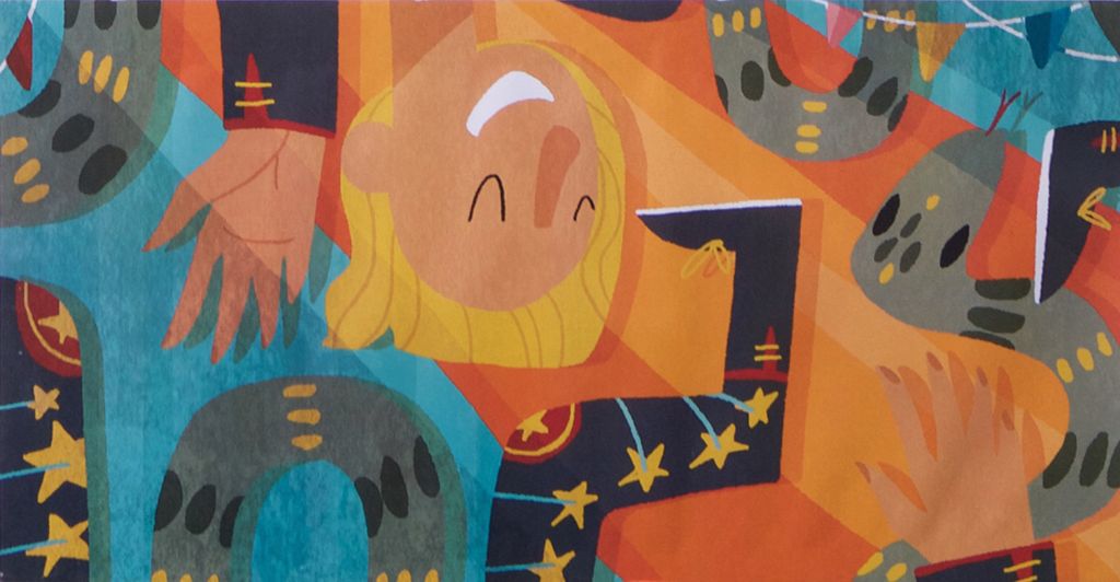 Dussie is highly interested in narrative. 'When I'm 6' follows her own written narrative of a child's wonder at the circus, it explores a child's perception of the future as well as showing the bright hope filled imagination. It also looks at diversity and how we all have our own fun characteristics. Each spread is made up of two events combined together.