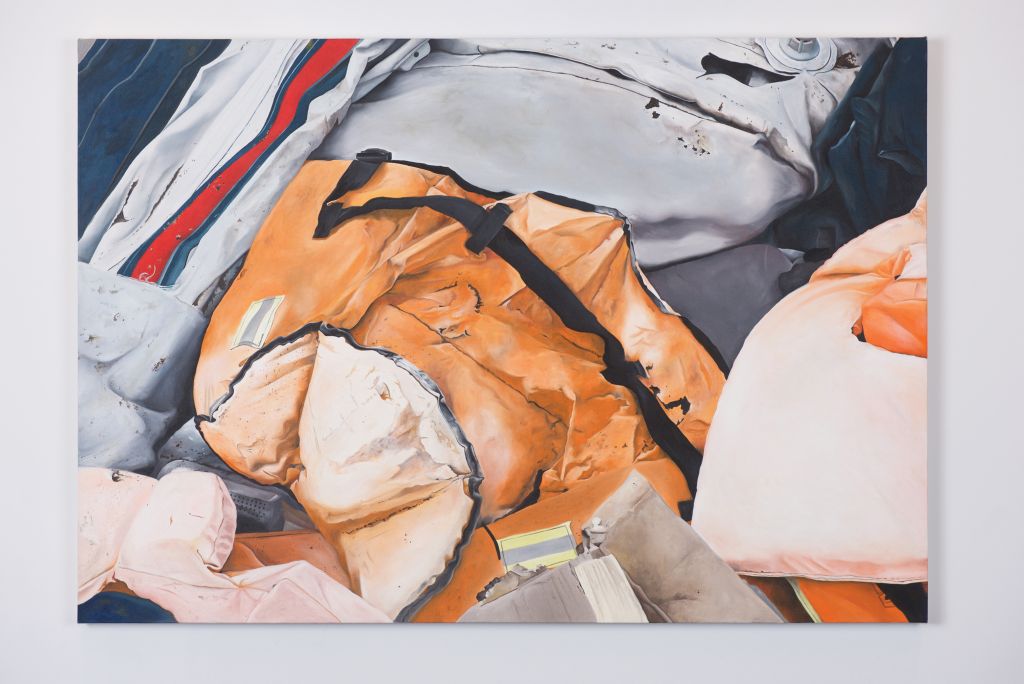 The artist, born and raised in a half-occupied island, Cyprus, explores the current refugee crisis. Inspired by the lifejacket graveyard in Lesvos, a landscape where people who are desperate to escape war pile their dreams. The artwork is a stark portrait of the many refugees who crossed the Aegean Sea and a shout out to the world for help to all those who are fighting for a better future.