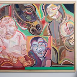 I vigorously combine the looming, stretched and desirous imagery of fashion editorials with the recognisable romance and free immediacy of German expressionism, fauvism and impressionism. Passionately painted, when approached closely, these hulking figures also become abstract compositions of rubbed, swirled and sometimes melting paint. While referring to processed and stagey photography, posing and artifice are joyously and intimately entangled with the hyperbolic desire and eroticised energy of gestural painting.
