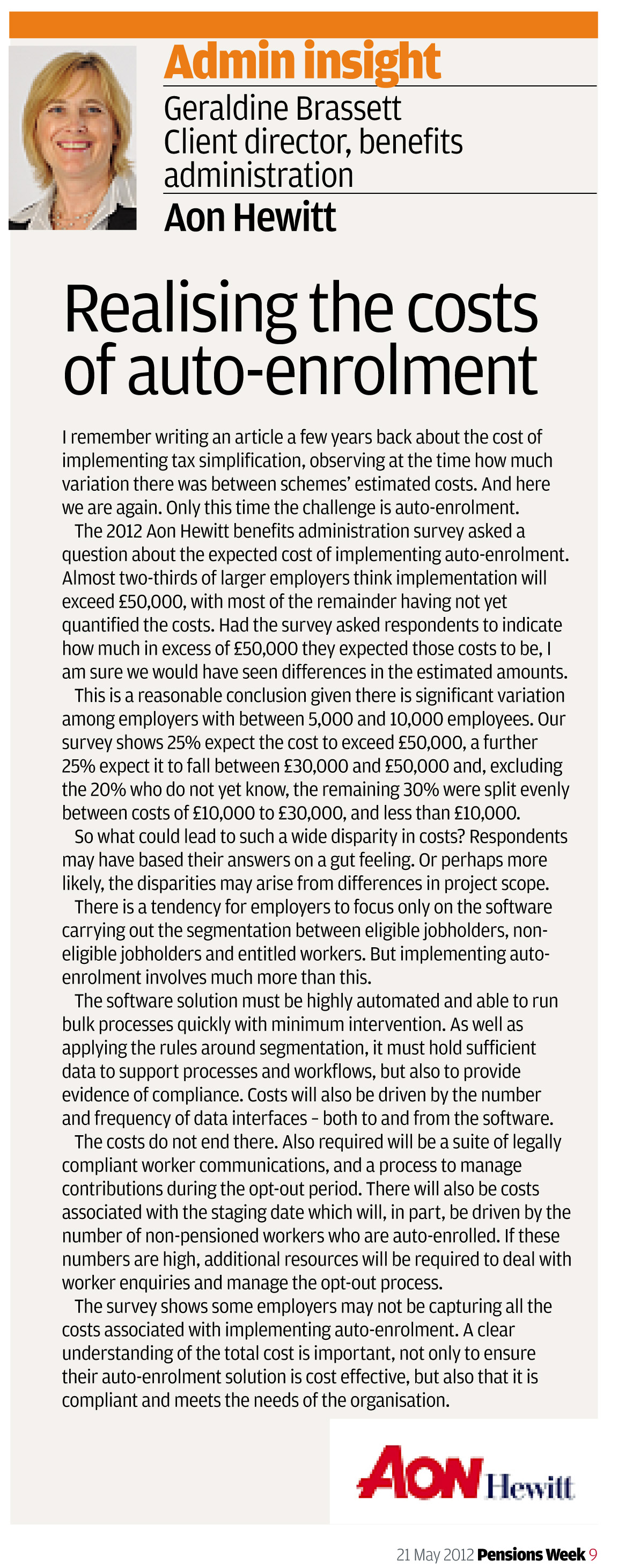 Realising the costs of auto-enrolment - Pensions Week, May 2012