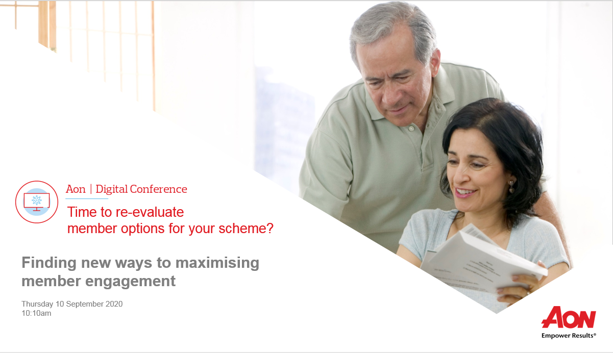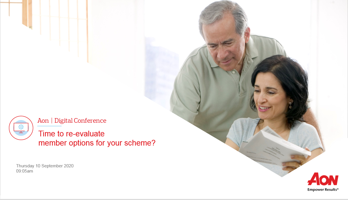 Aon experts are joined by key industry figures and clients who have recently refreshed their approach to member options, sharing insights of their experiences. The conference agenda was developed to share insights from two angles: from the perspective of supporting members with their options and also looking at the impact on scheme funding.