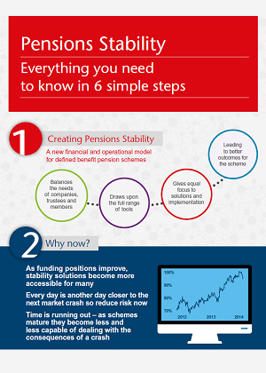 Read our whitepaper on Pensions Stability, or our shorter guide or infographic to understand why Pensions Stability should be the objective for pension schemes, and how to achieve it.