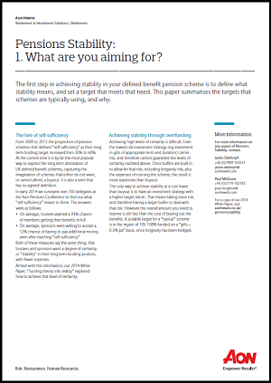 The first step in achieving stability in your defined benefit pension scheme is to define what stability means, and set a target that meets that need. This paper summarises the targets that schemes are typically using, and why.