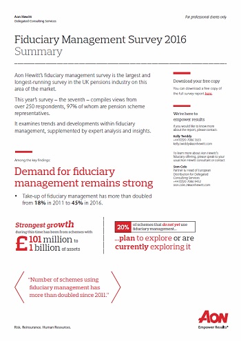 Aon's seventh survey on the fiduciary management of DB pension schemes is now available.